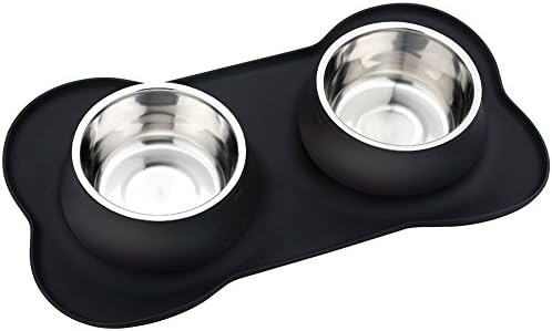 Pet Deluxe Dog Bowls Stainless Steel Dog Bowls with Non Spill & Non Skid Silicone Mat, 24/54 oz Double Dog Bowls Feeder Bowl for Small Medium Large ...