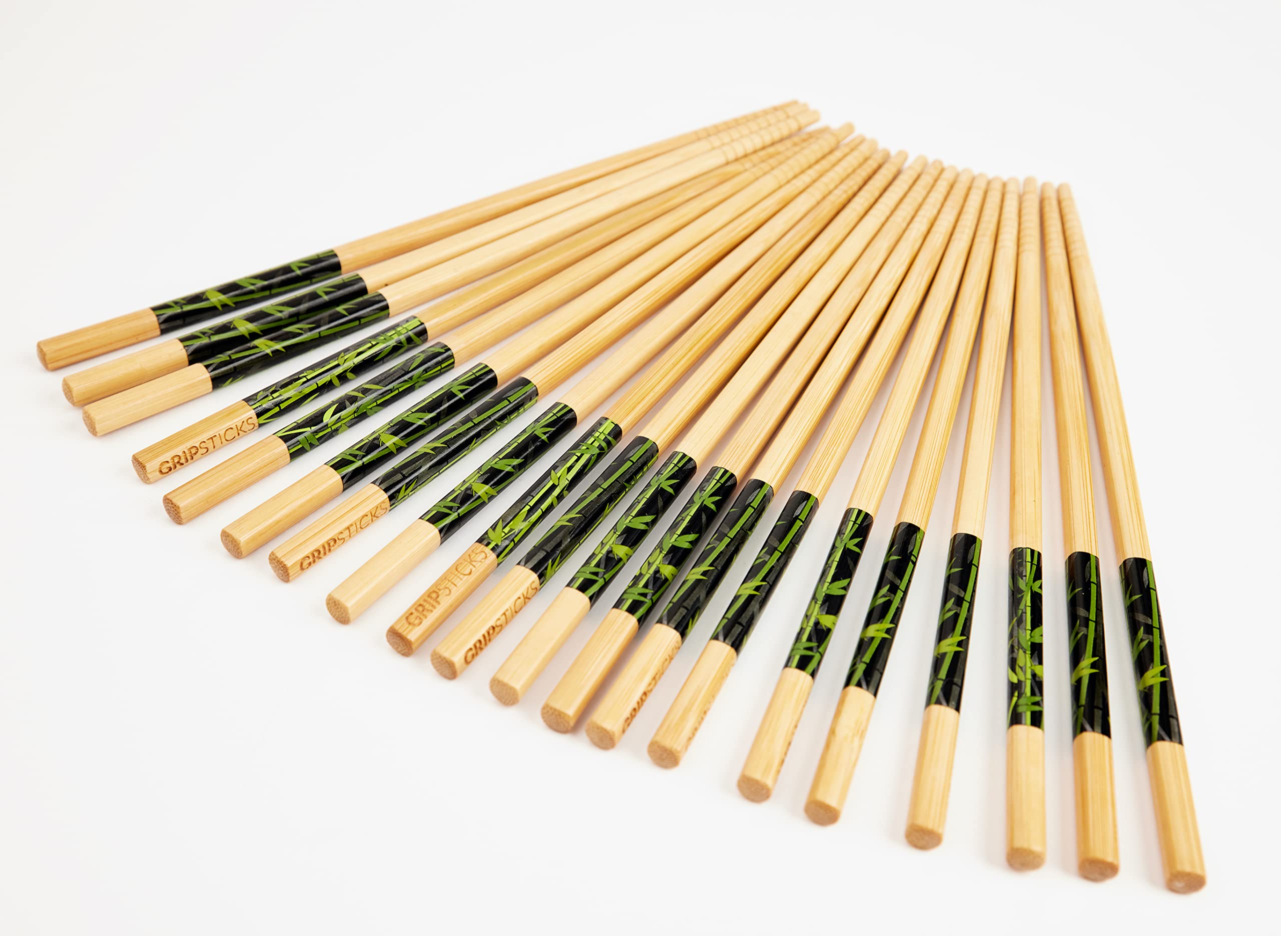 GripSticks 10-Pair Bamboo Chopsticks with Anti-Slip Tips, Japanese Reusable Chopsticks, 9-inch (22.5cm)